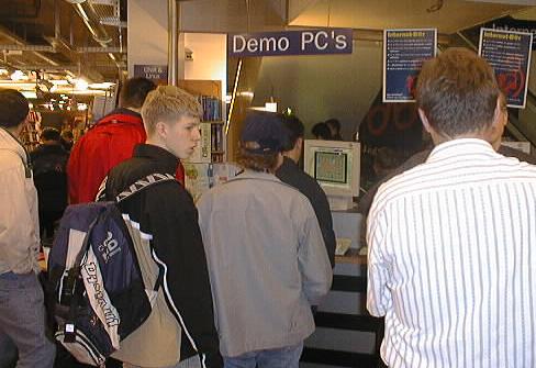 Dieser Anlass fand am Samstag dem 25. Mai 2002 statt. Bereits morgens um 9.00 Uhr, bemerkenswert früh für einen GNU/Linux-Enthusiasten, standen die Vertreter der LugBE bereit für Fragen und Antworten. Zu Beginn schlenderten die Besucher meist etwas verunsichert beim GNU/Linux-Demo-PC vorbei und hörten mit einem Ohr zu, wie zwei LugBE Mitglieder darüber diskutierten, mit welcher freien Software nun MPEG 3 Audio Dateien auf eine CD-ROM gebrannt werden können. Jedoch nur wenig später war die Ecke um den GNU/Linux-Demo-PC mit einem Bazar zu vergleichen. LugBE Mitglieder, welche untereinander diskutierten, andere die den Besuchern Fragen zu beantworten versuchten oder irgendeine tolle Applikation auf dem Linux-Demo-PC zeigten. Ein rundum reger Betrieb, welcher bis Ladenschluss anhielt. Die Fragen reichten dabei von sehr konkreten technischen Problemen, bei denen Hilfestellung gebraucht wurde, bis hin zu allgemeinen Fragen, die zum Teil schon eher der philosophischen Fakultät zugeordnet werden müssen. So konnten einige neue Kontakte geknüpft werden, die sich hoffentlich bald an den LugBE-Treffs vertiefen lassen.