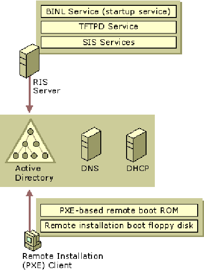 BINL Service (kann auch durch einen normalen DHCP Server mit zusatzstrings (darin enthalten ist die Adresse des RIS Servers)