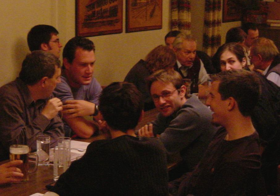 Simon Glauser möchte nicht mehr Revisor sein, an seiner Stelle wird nächstes Jahr Thomas Deutsch zusammen mit Chris dem Kassier auf die Finger schauen. 6. Sonstiges:Markus möchte evtl. einige der 15 alten PCs, die dem Klub gehören, für ein Projekt in einem Durchgangsheim für Asylbewerber verwenden und bittet dafür um Erlaubnis. Diese wird erteilt, es soll aber versucht werden, das Projekt so zu gestalten, dass beide Seiten davon profitieren (das Zentrum könnte uns etwa den von uns eingerichteten Technikraum für LugBE-Anlässe zur Verfügung stellen oder Kollektivmitglied bei der LugBE werden...). Gegen 20.50 Uhr war der Zauber vorbei und die LugBE konnte sich wieder dem zuwenden, was sie am liebsten tut: Bis zur Sperrstunde wurde gefachsimpelt, diskutiert, wurden Laptops (mit und ohne Mucken) vorgeführt, Tipps ausgetauscht (mehr oder weniger heisse), wurden Thesen aufgestellt, die so mancher anständigen CPU die Schamesröte in die Register treiben würden, und es wurde am Aufbau des Linux-Supporter-Netzwerkes gefeilt. So gegen Mitternacht hatte uns dann aber die frische Nachtluftwirklichkeit wieder. Markus